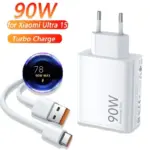 Experience rapid charging with the Xiaomi USB charger’s 90W power output, ensuring your devices are powered up swiftly.