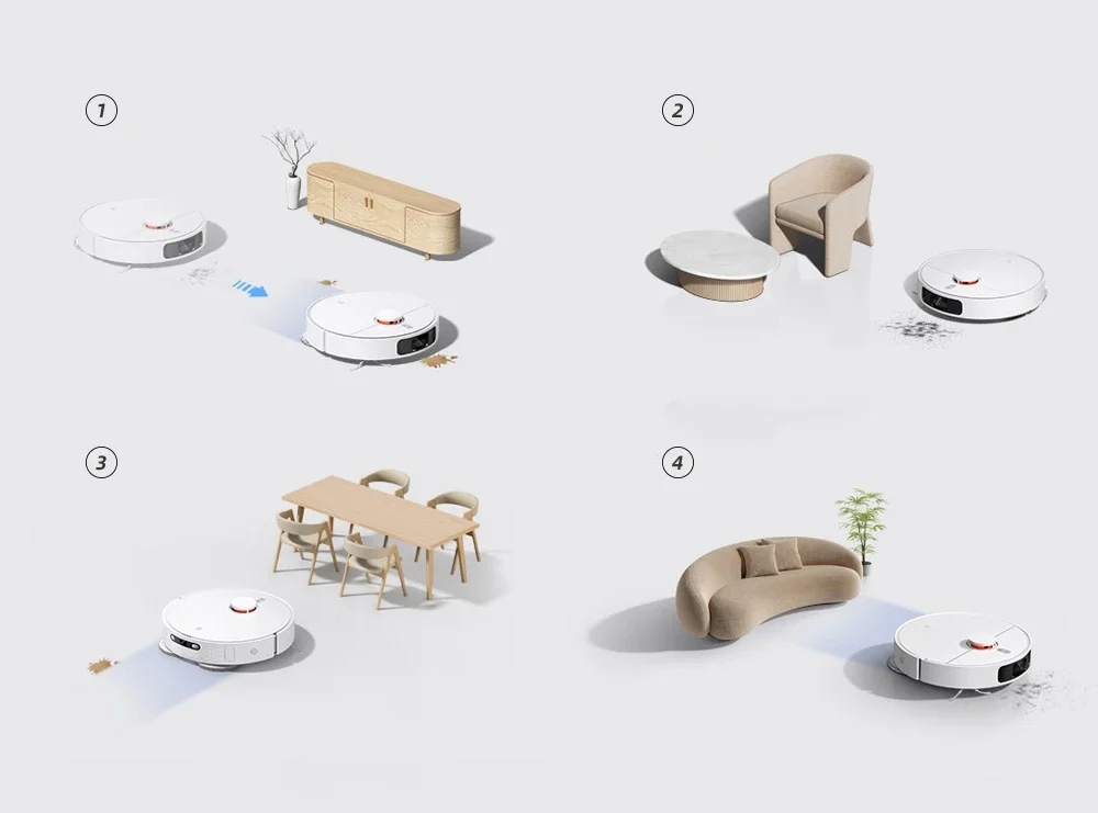 * Percepción a nivel milimétrico de obstáculos bajos: equipado con s-Crossm™Amplio Campo de evitación de obstáculos ligeros estructurados, el robot evita hábilmente los obstáculos bajos y ajusta los movimientos en consecuencia.
