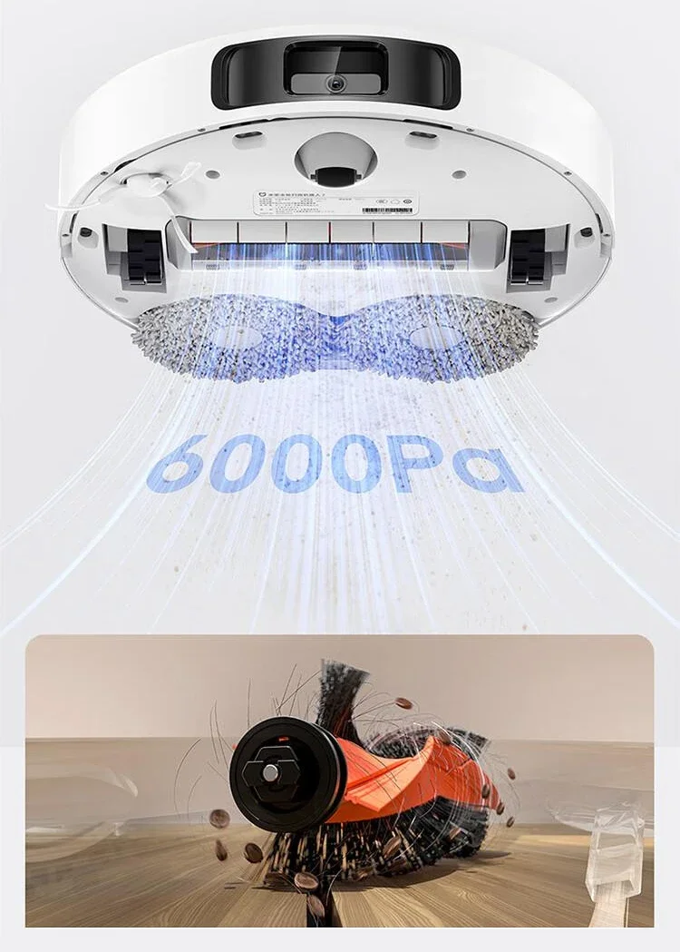 El ventilador insignia incorporado de 6000Pa succiona instantáneamente el polvo y los pelos de las grietas del piso, la parte inferior de las paredes y las esquinas de los muebles, Y completamente eficiente la tarea de eliminación de polvo.