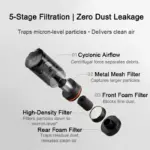 5-Stage Filtration,Clean Air Output, Zero Dust Leakage