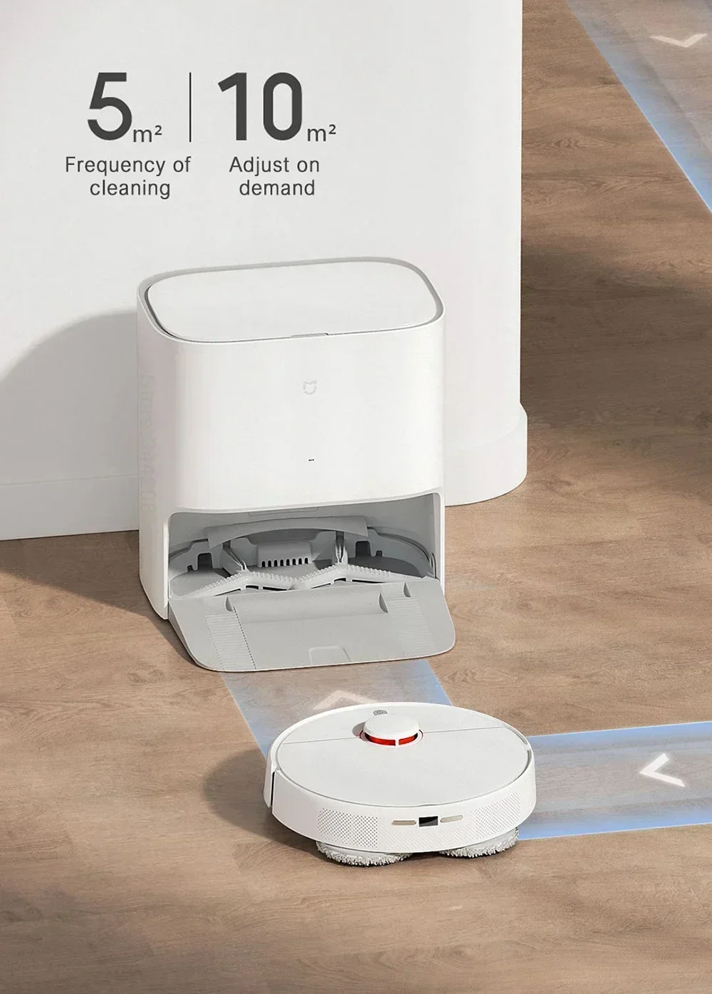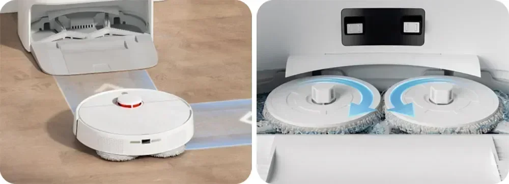 Equipped with an intelligent lifting mop that automatically lifts up when returning to the base for cleaning, preventing secondary pollution of the floor.
