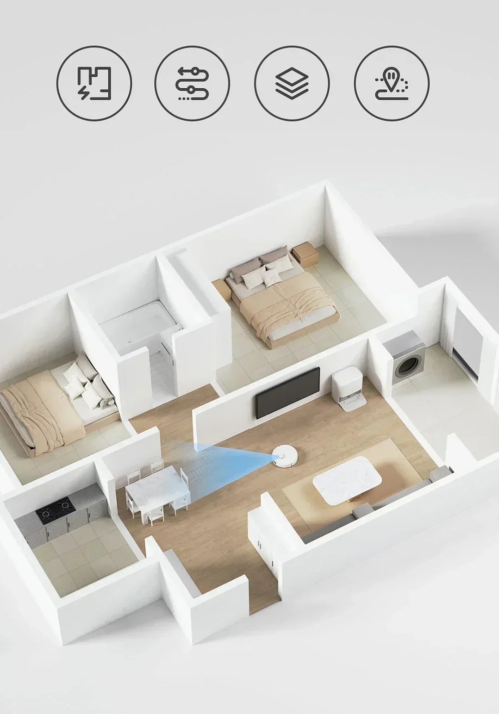 When you’re away from home, simply open the Mi Home App to remotely start the cleaning task. It also supports customized functions such as scheduling cleaning and setting no-go zones, giving you control of the ground cleaning with one hand.