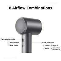 2 wind speeds, 4 temperature settings, a total of 8 airflow options for versatile drying, with automatic temperature mode memory.