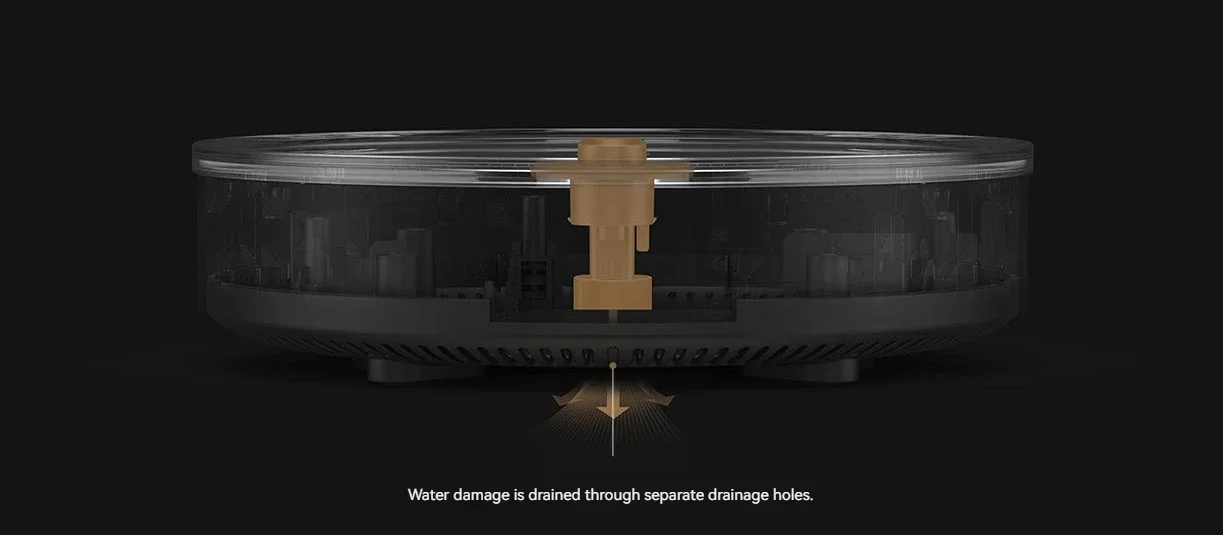 and the induction coil completely separated, cooking inadvertent inflow of water can be discharged in a timely manner.