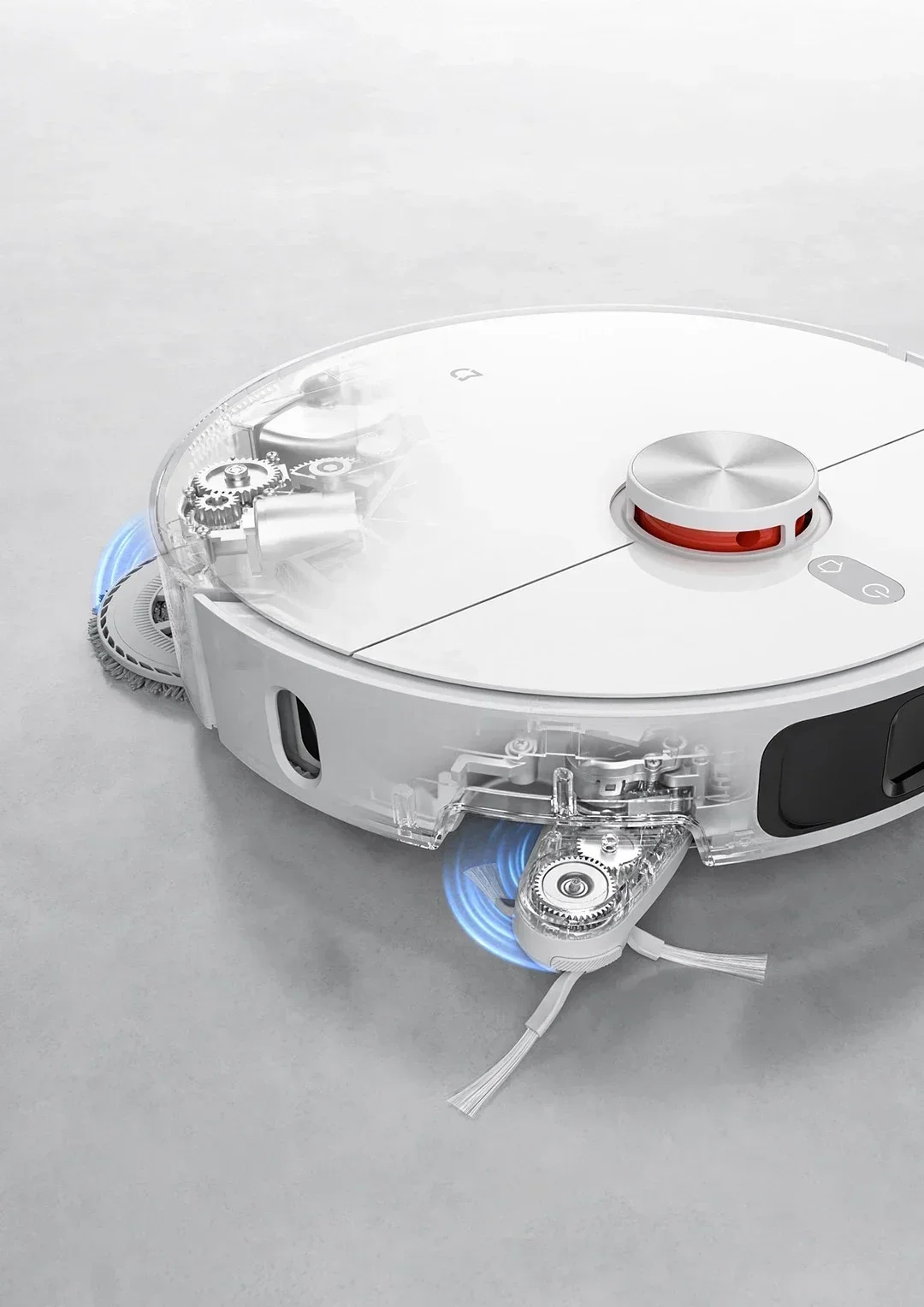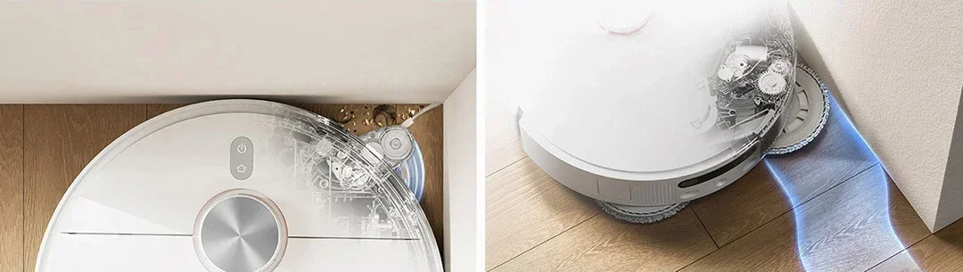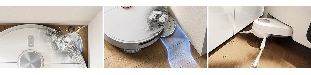 * Dual Robotic Arm Design: Innovative dual robotic arms capable of edge cleaning in corners and crevices. Telescopic side brushes and mops provide millimeter-level edge cleaning and deep cleaning in low spaces.