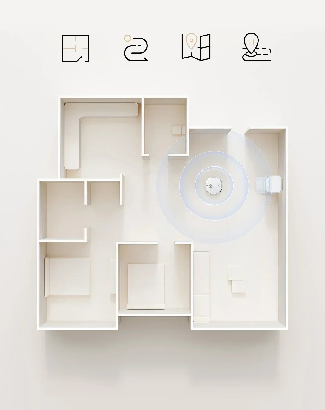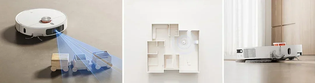 Smart path planning with full house scanning. Using advanced laser navigation technology, it scans the room layout in 360°, quickly mapping the home to plan efficient cleaning paths.
