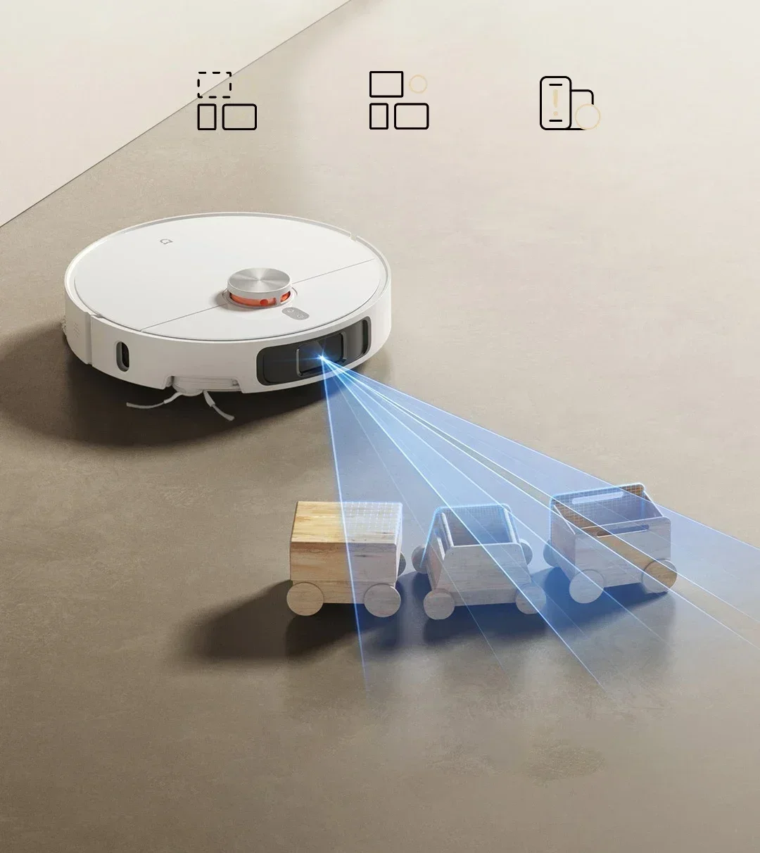 Millimeter-level obstacle avoidance for careful cleaning. Equipped with the S-Cross™m wide-structure light obstacle avoidance system, it perceives low obstacles with a 110° ultra-wide angle, ensuring precise cleaning without collisions.