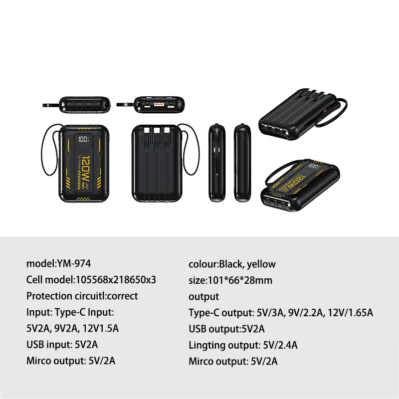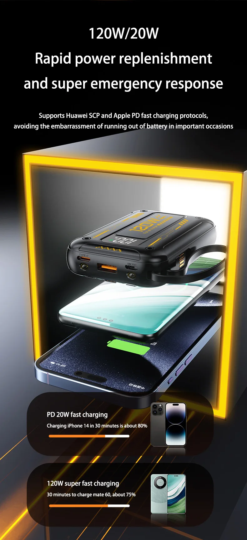 Xiaomi Mini Mech Style Power Bank PD 120W 50000mAh Super Fast Charging 4-in-1 Cable High Capacity For IPhone Android Samsung NEW