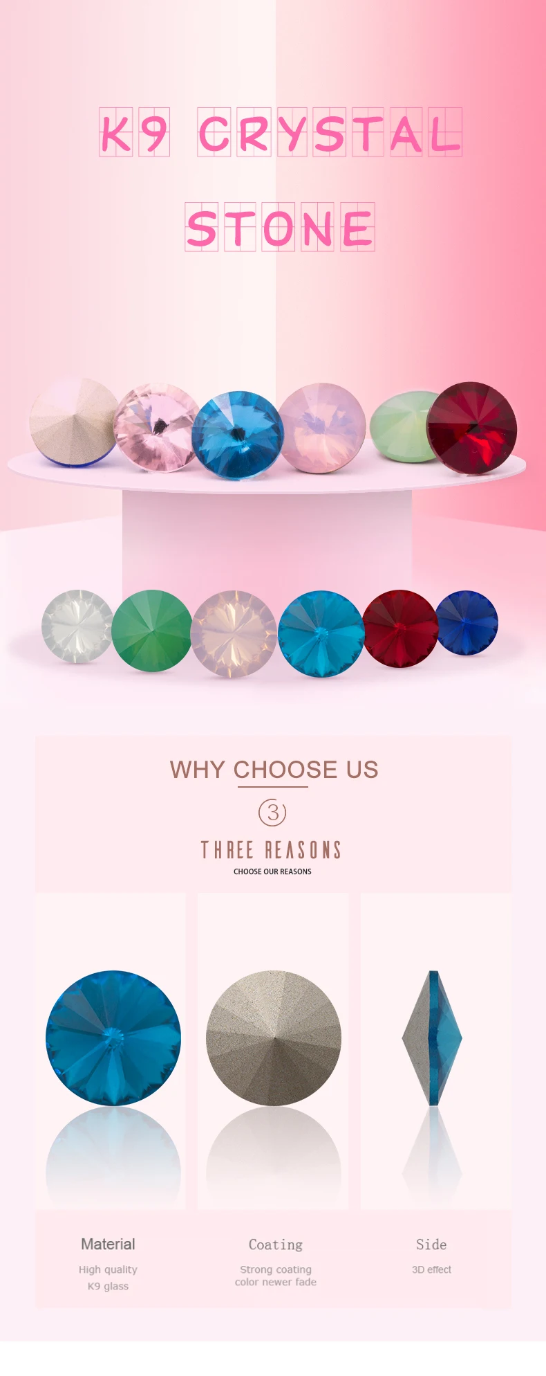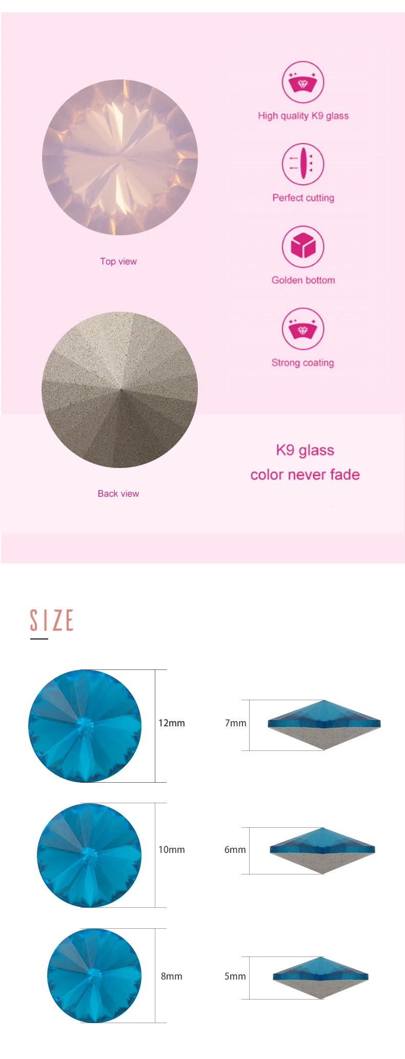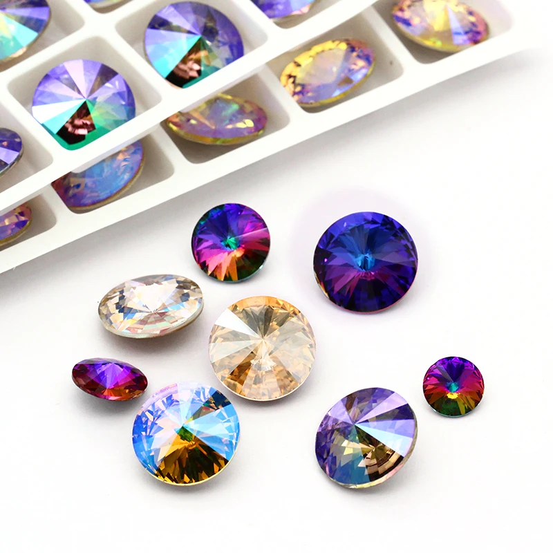 XiChuan New Fancy 10Pcs Top Rivoli Pointback Satellite Sew On Rhinestone Round Glass Crystal Bead For DIY Clothes Jewelry Making