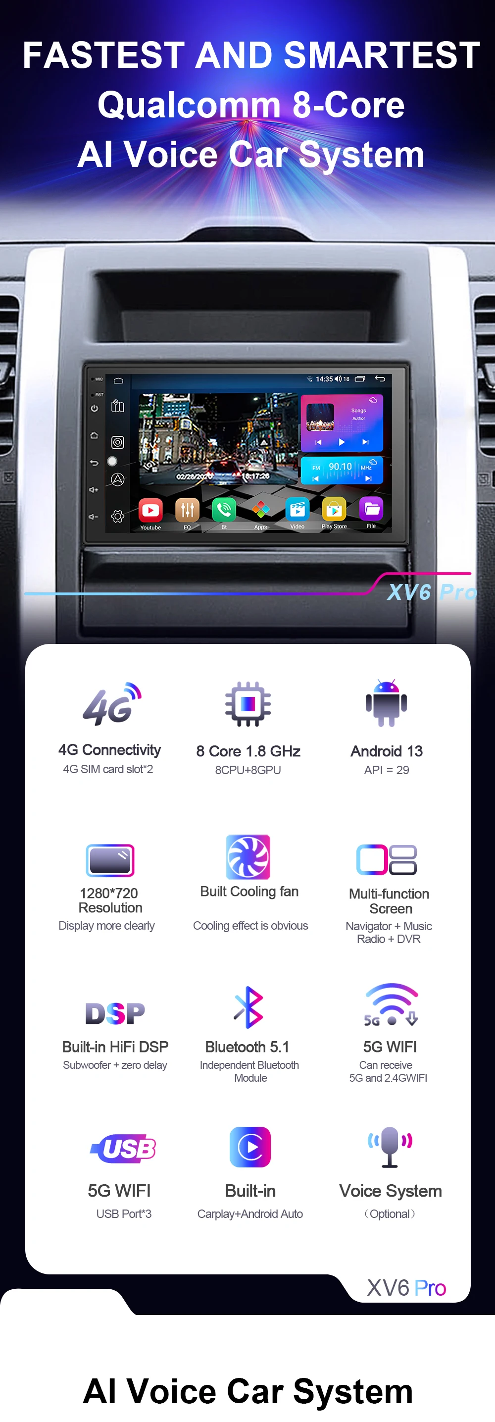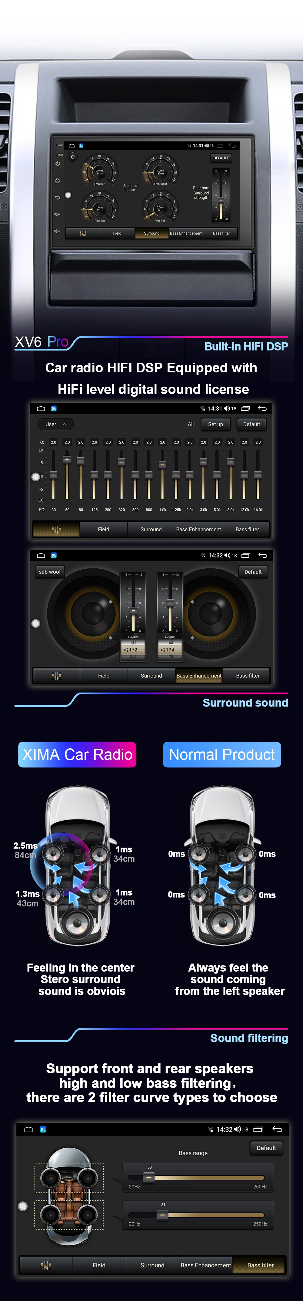 XIMA XV6 Pro DSP equipped DTS HiFi level digital sound This technology can adjust the surround sound up and down so that greatly reduces the self-noise and make the sound conversion effect maximized so that you can enjoy a high-quality music performance in your car