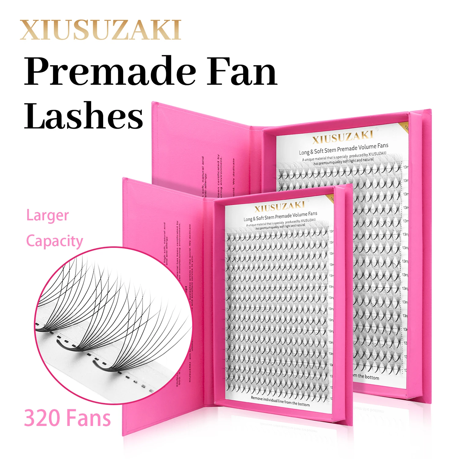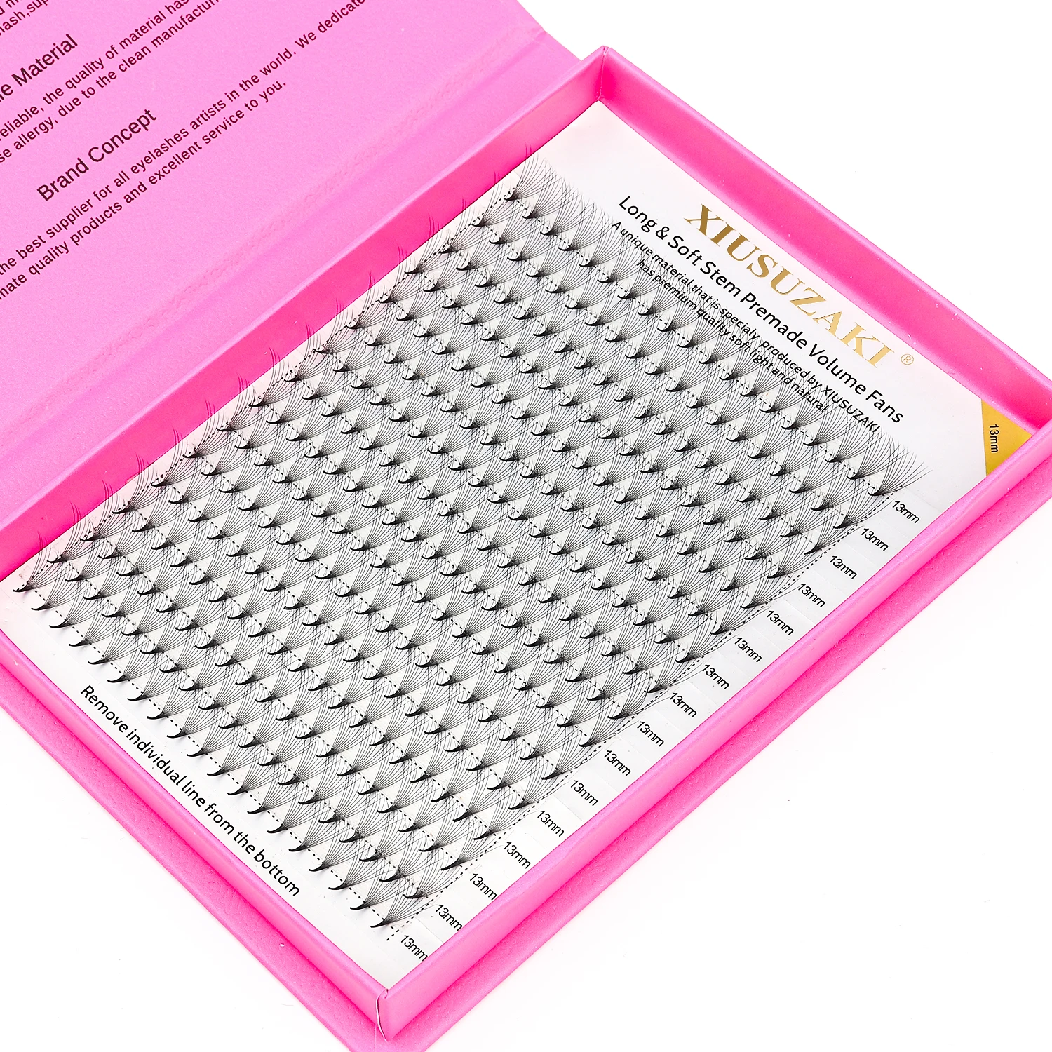 XIUSUZAKI 16 Rows Premade Volume Fans Eyelashes Extension 9D 10D 12D 14D 16D Thin Pointy Base Russian Volume Fans False Lashes