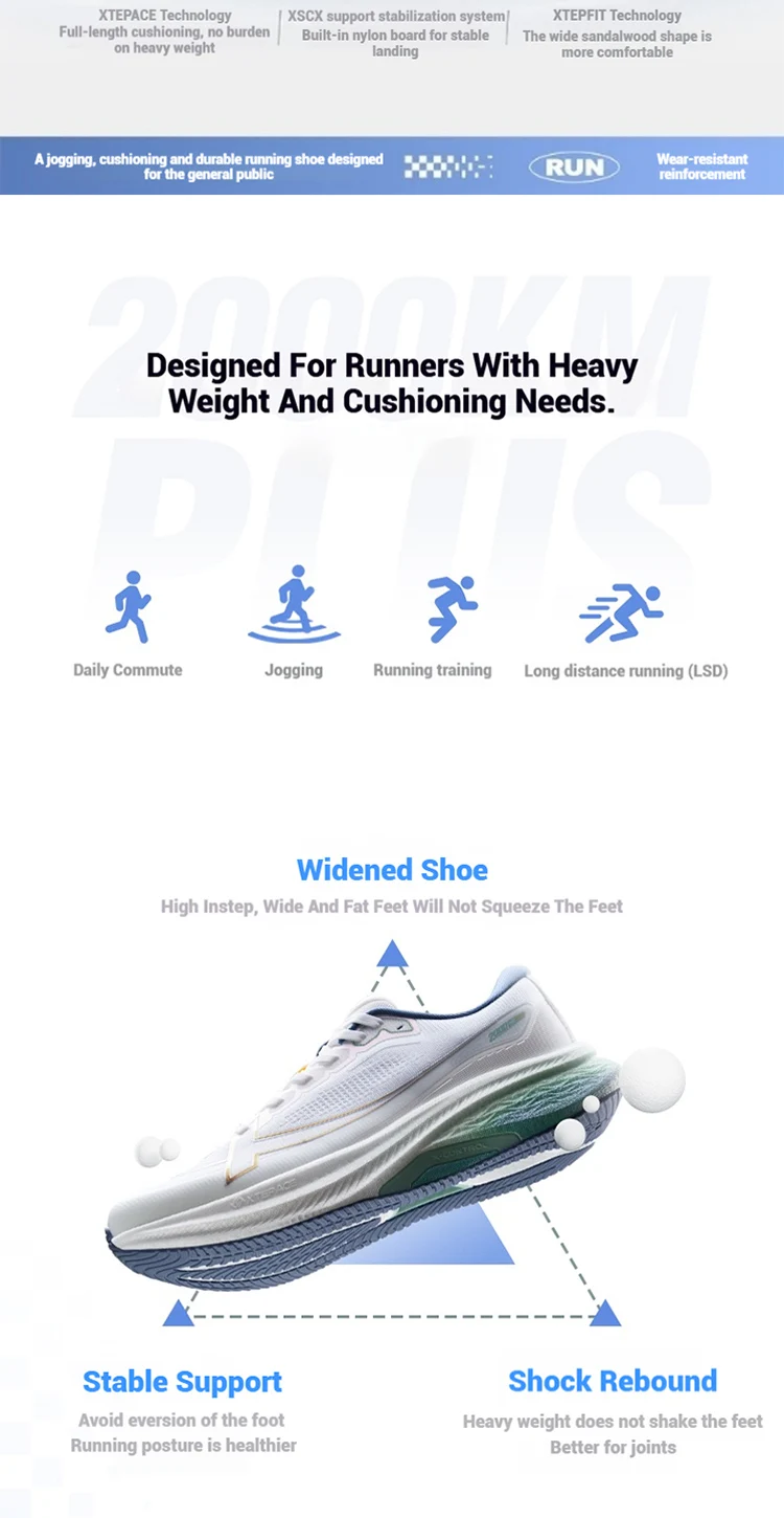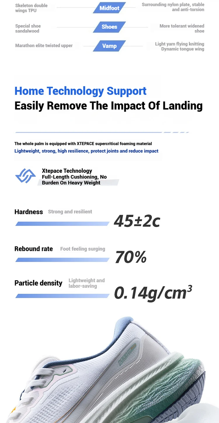 Midsole function:Shock absorptionOutsole function:Wear resistance