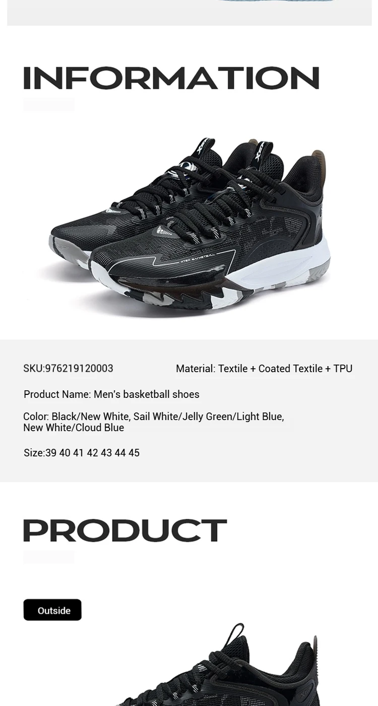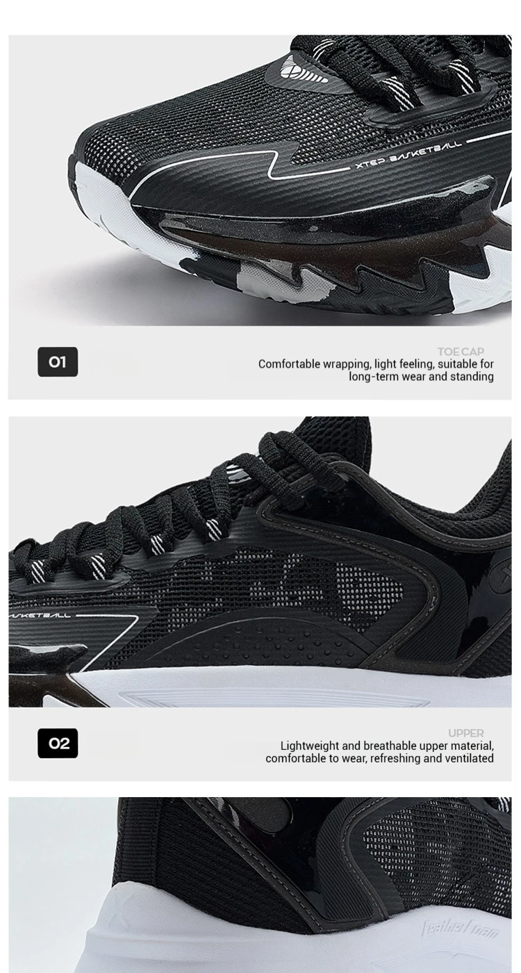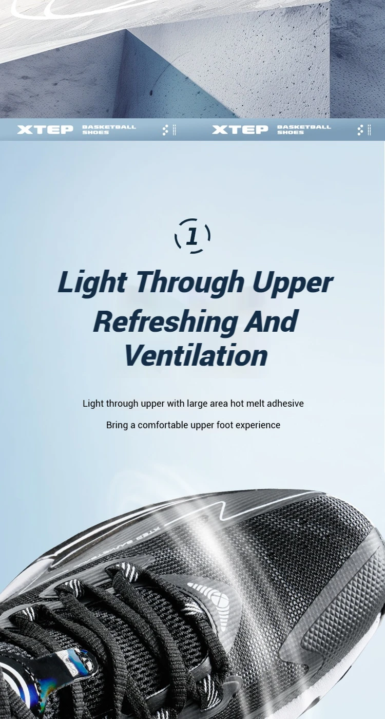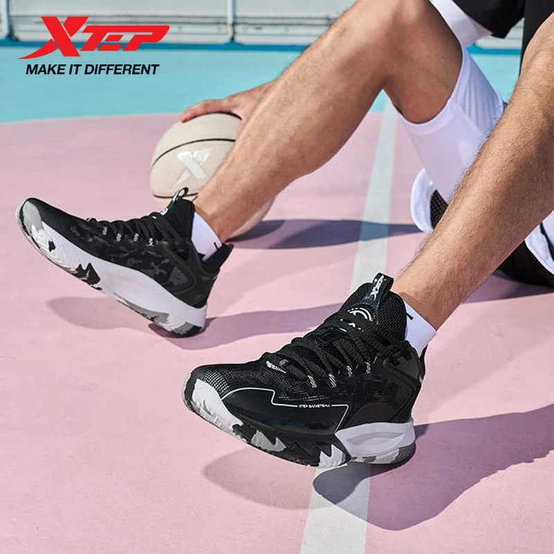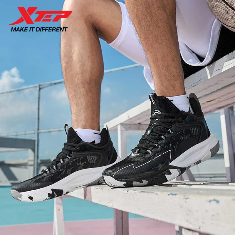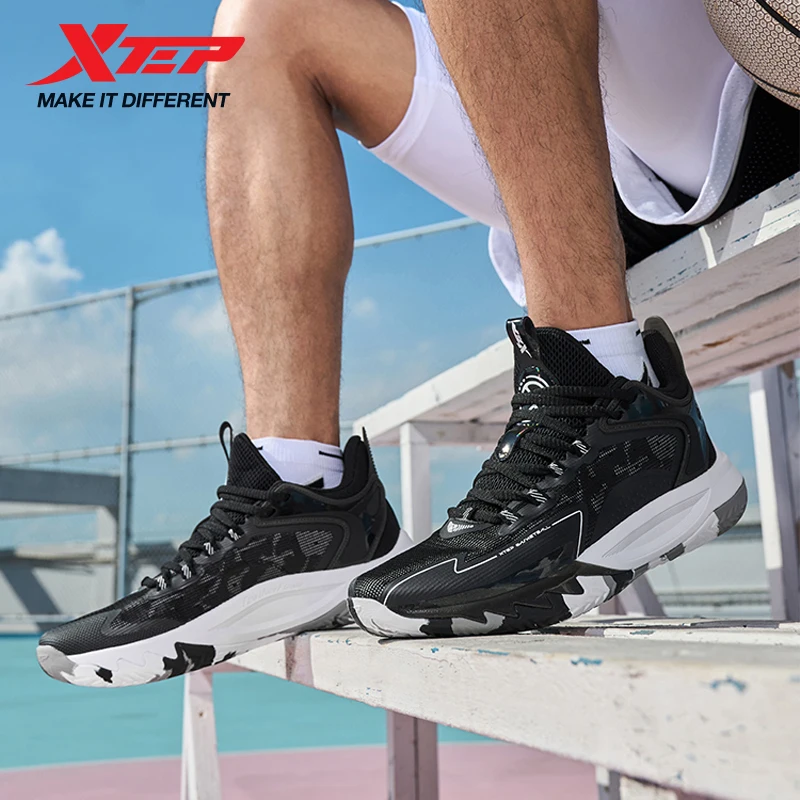 Xtep Basketball Shoes For Men 2024 Summer Shock Absorption High Top Comfortable Combat Soft Sport Shoes 976219120003