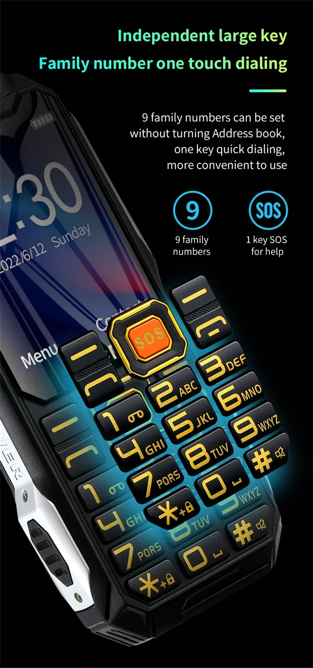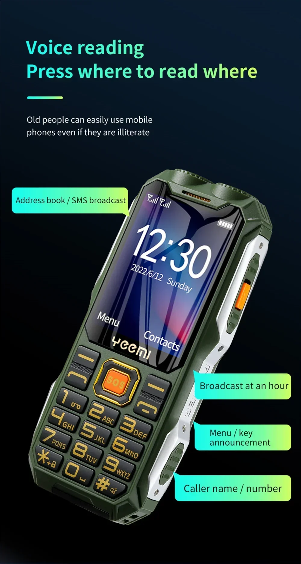 YeeMI Q8 2G/4G Rugged Phone Waterproof Feature Phones 2.6″ HD LED Light 16800mAh Battery Big Loudspeaker Cellphone For Older SOS