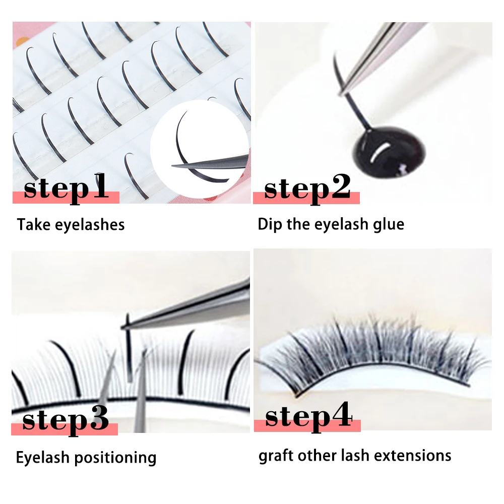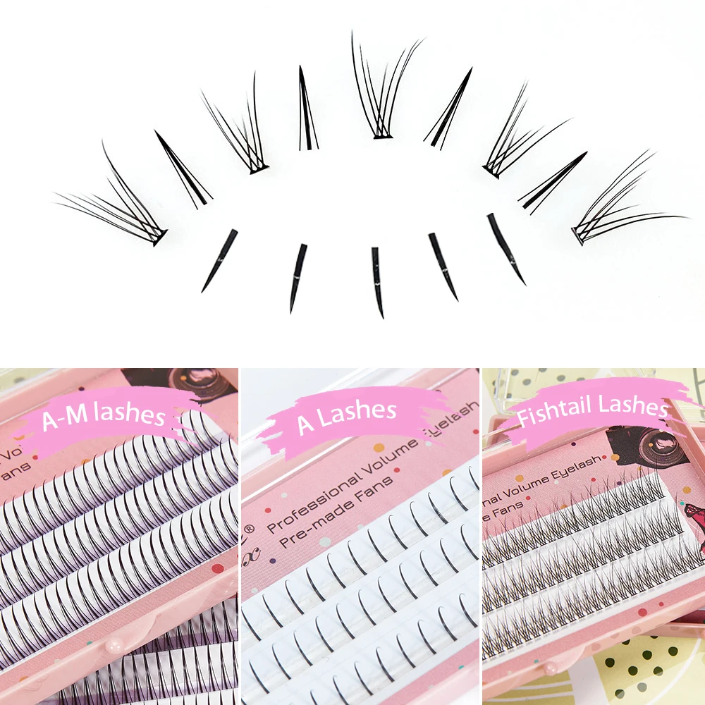 Yelix A/M Shape Professional Makeup Individual Lashes Cluster Spikes Lash Wispy Premade Russian Natural Fluffy False Eyelashes