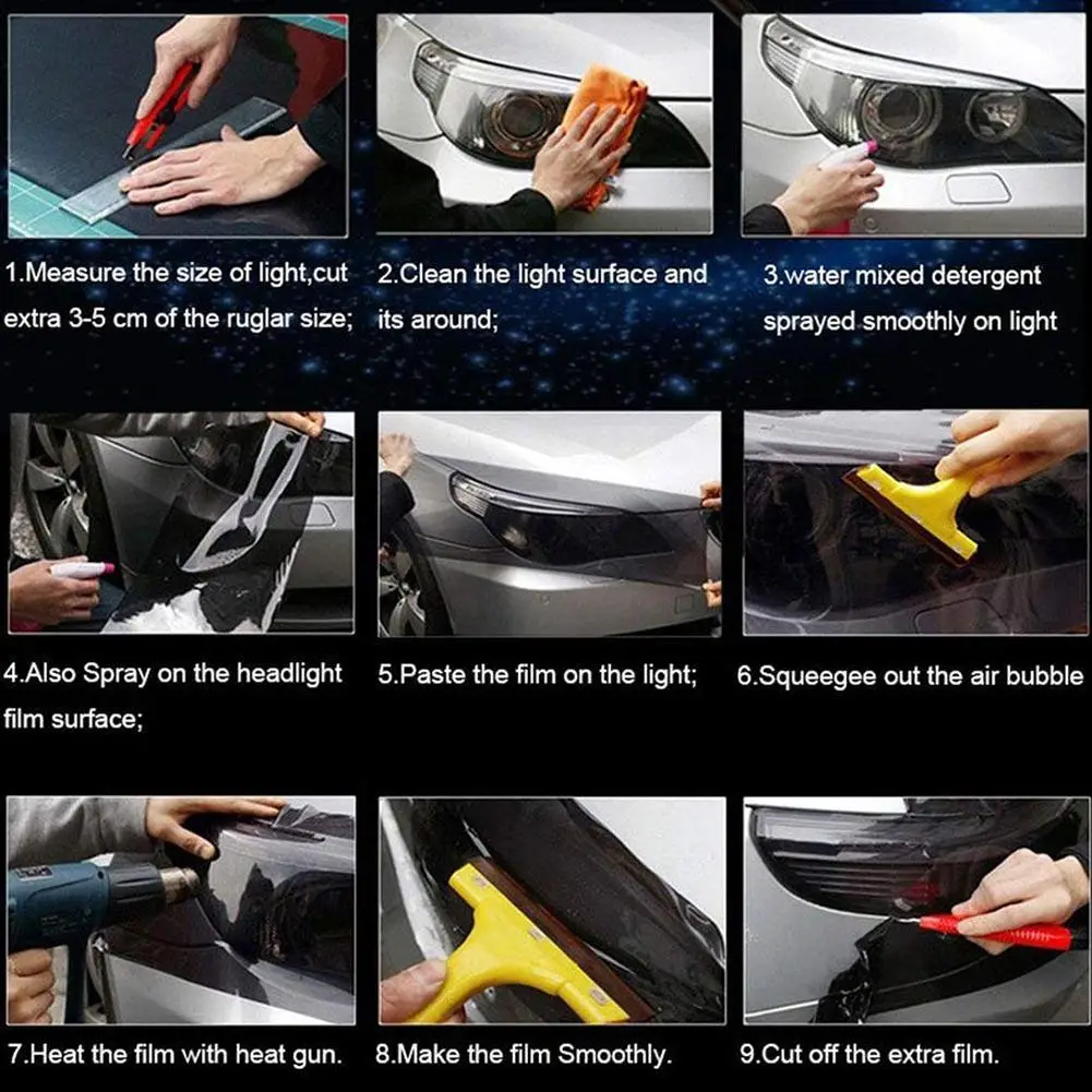 Can be applied to taillights, headlights, dashboards, stereos, brake lights, fog lights, side marker lights, bumpers