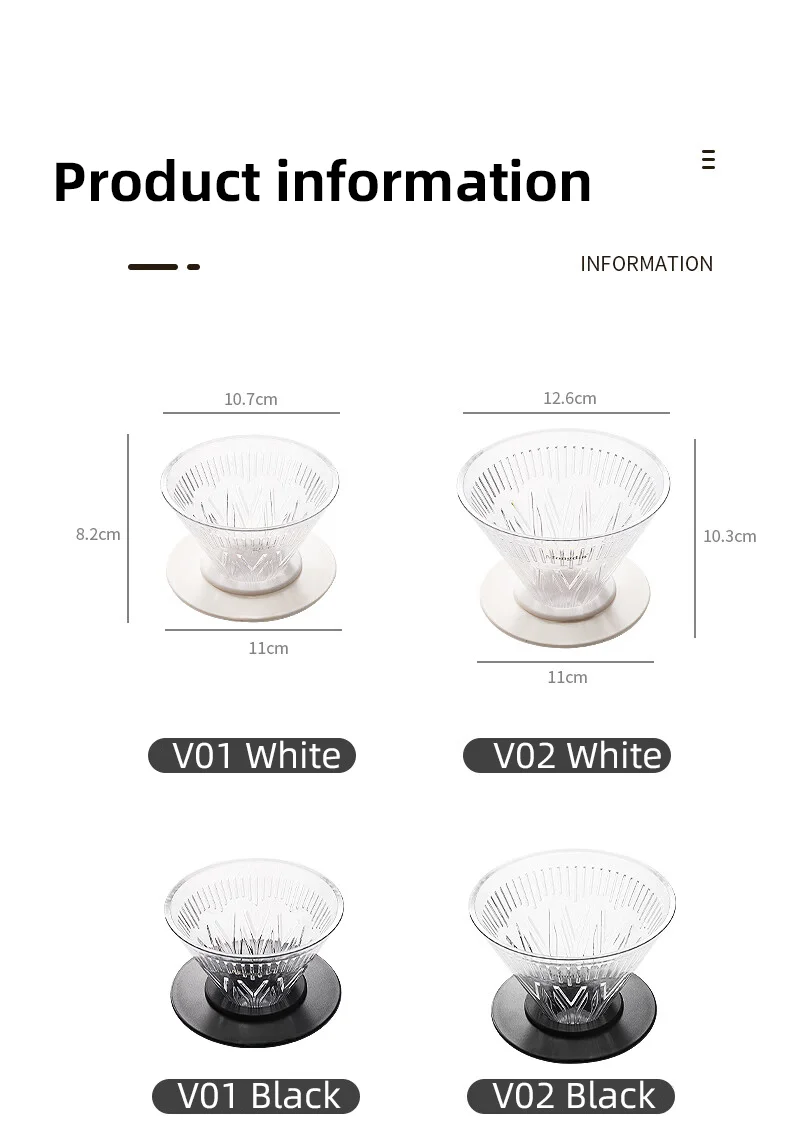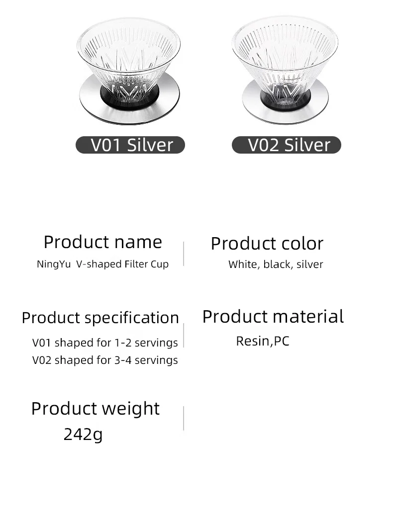 YRP Portable Coffee Filter Cup coffee dripper pour over V&60 White, black, silver gray V01/V02 quality reusable filters