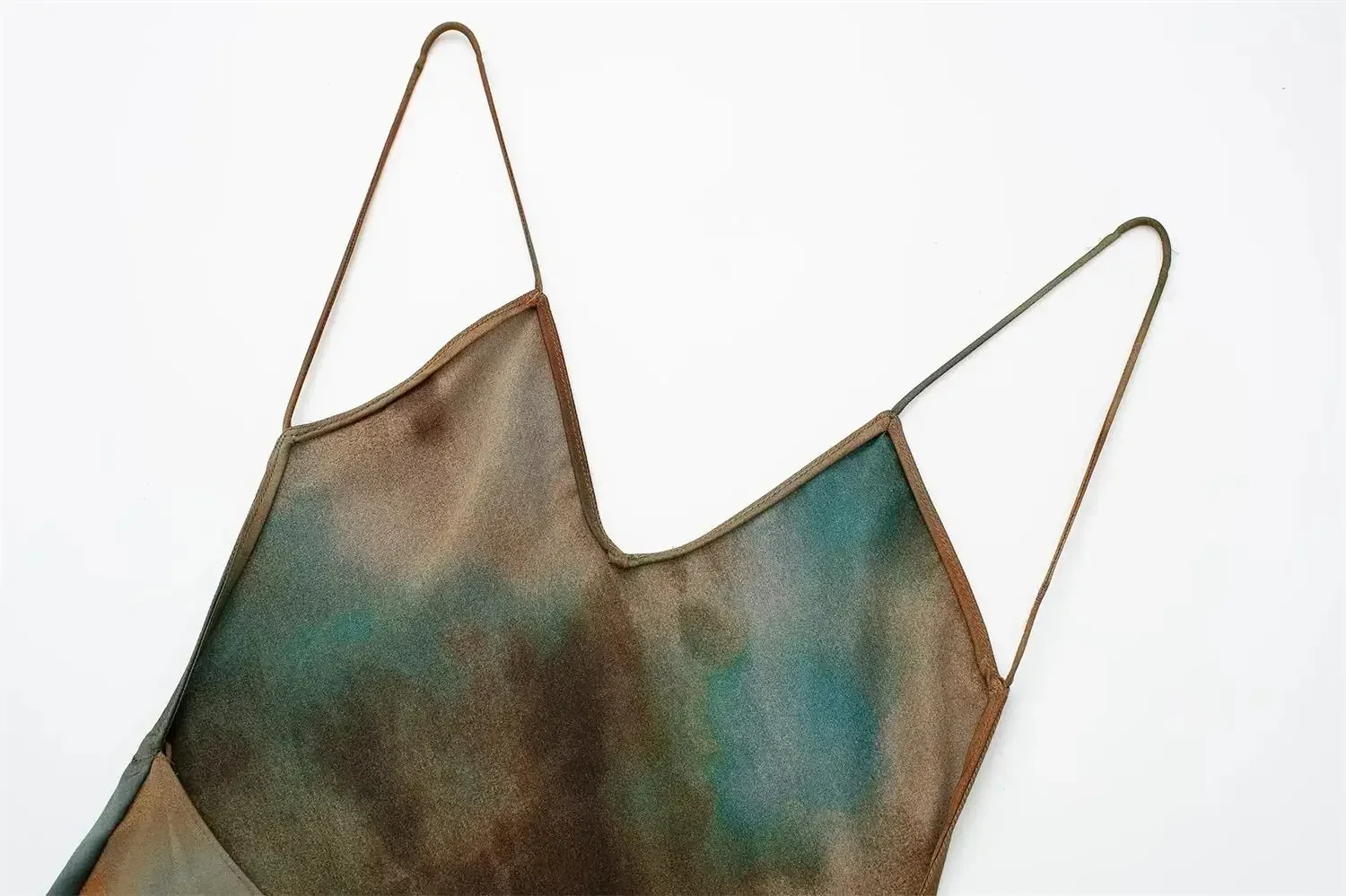 Be the first to review “ZADATA 2024 Summer New Women’s Open Back Sleeveless Dress Fashion Satin Mid Length Dress Printed Sexy V Neck Sling Dress”