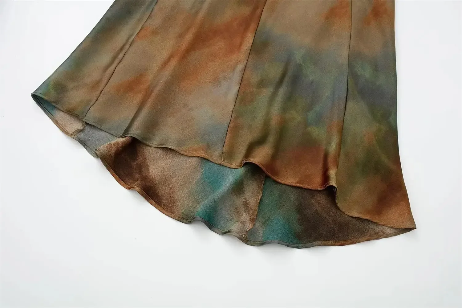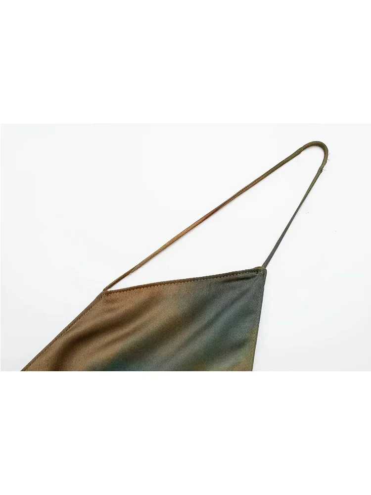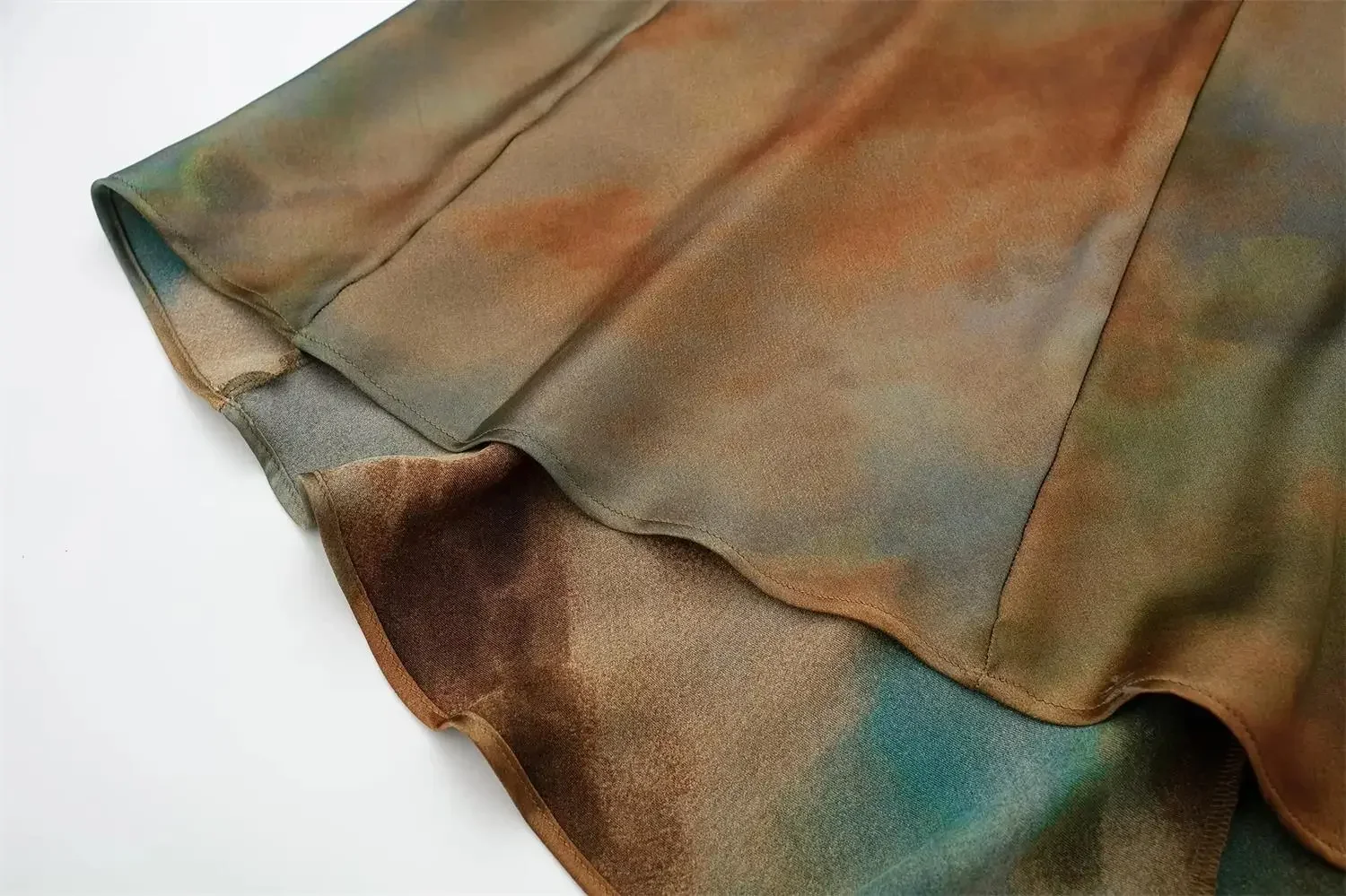 ZADATA 2024 Summer New Women’s Open Back Sleeveless Dress Fashion Satin Mid Length Dress Printed Sexy V Neck Sling Dress