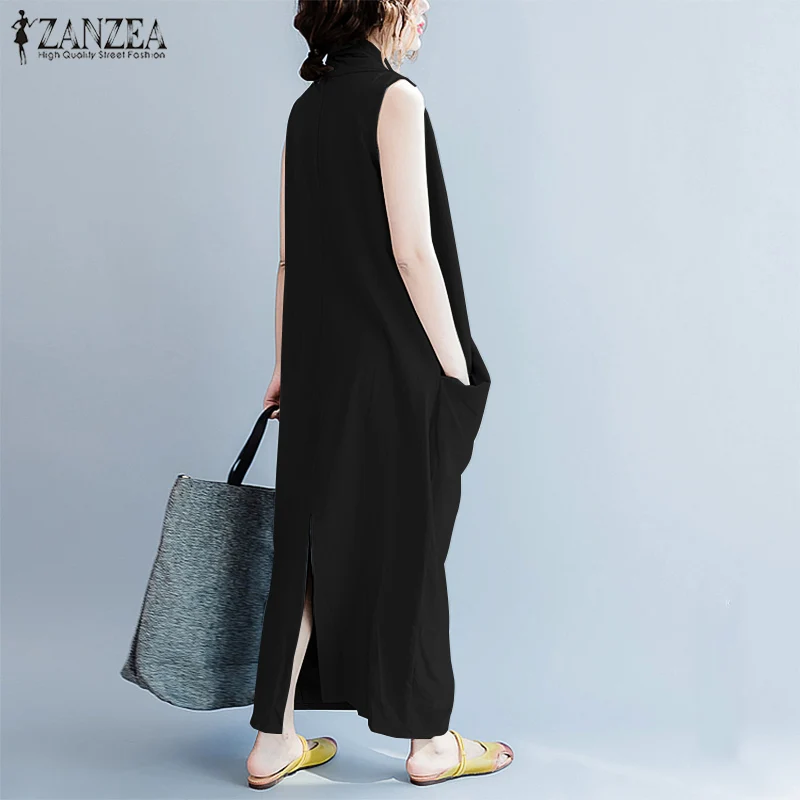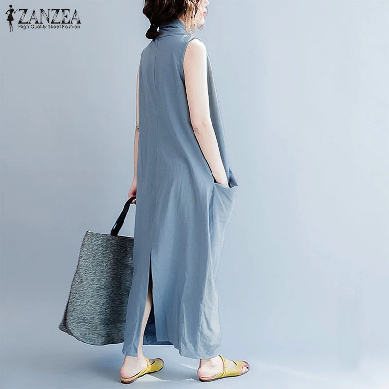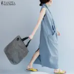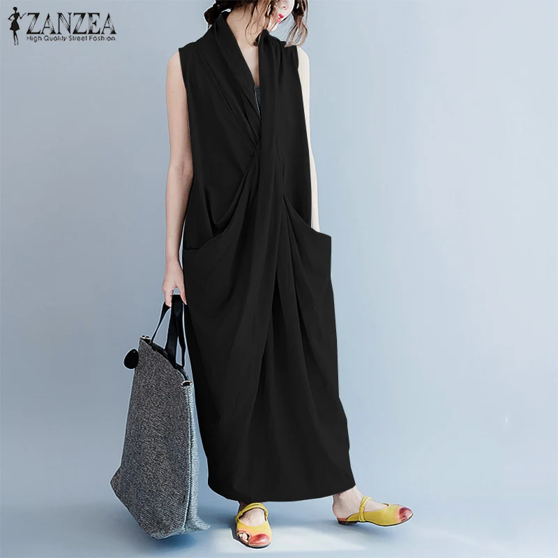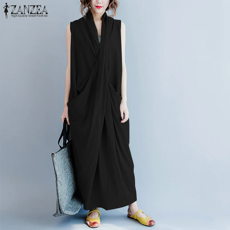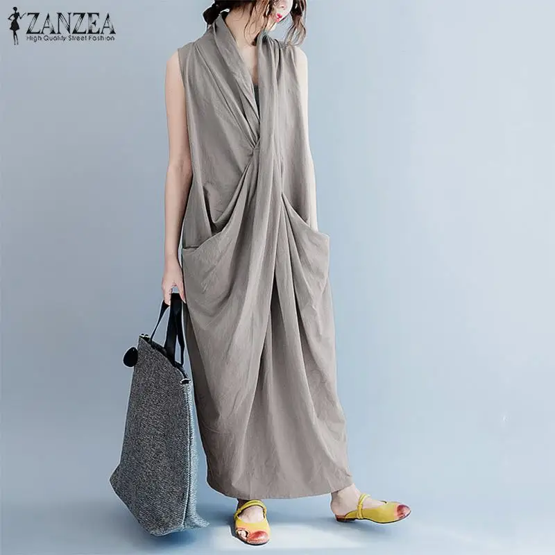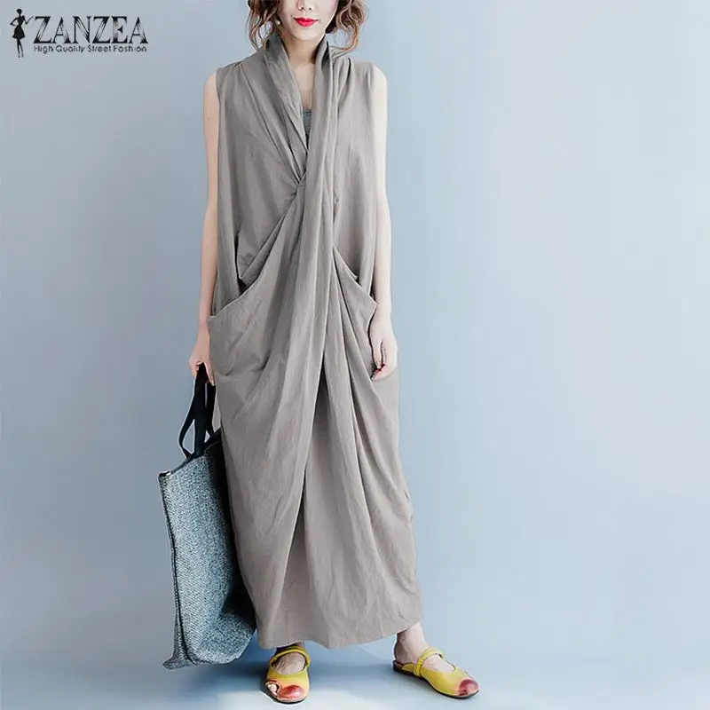 ZANZEA Oversize Asymmetrical Maxi Dress Women’s Summer 2025 Holiday Sundress Female V Neck Draped Vestidos Rayon Robes Femme