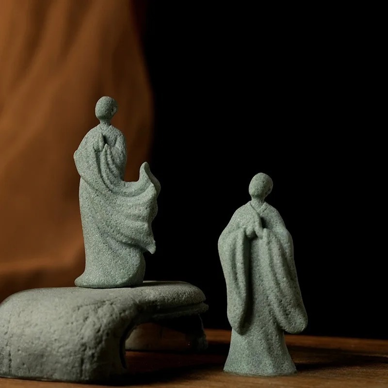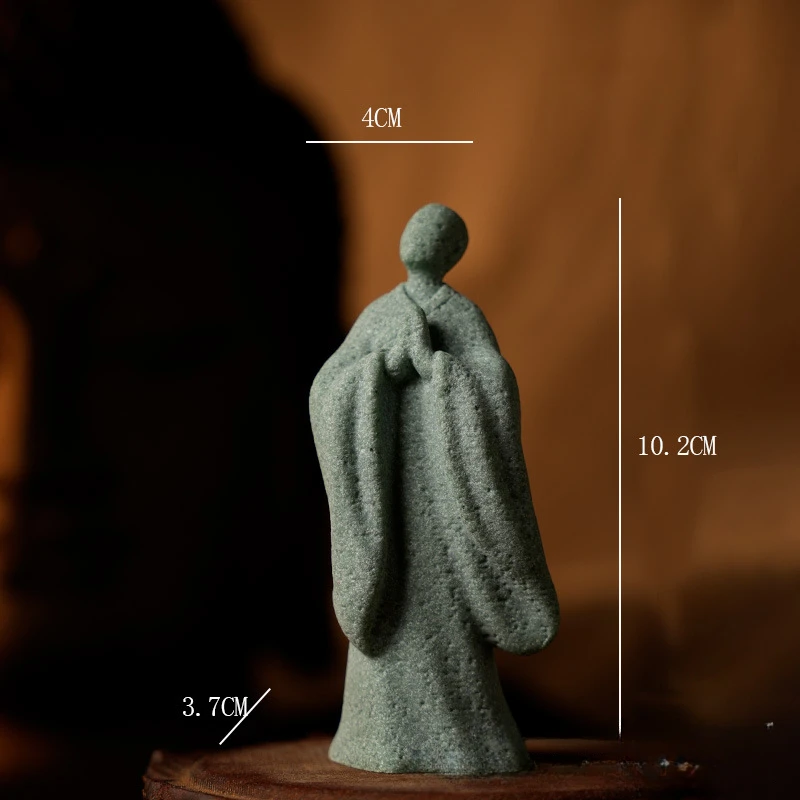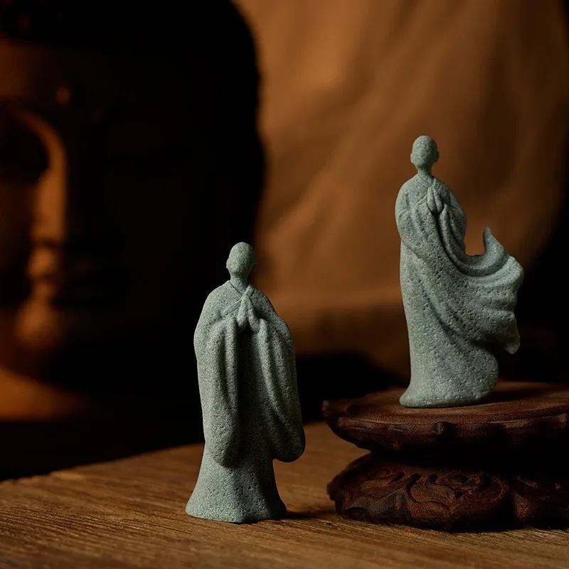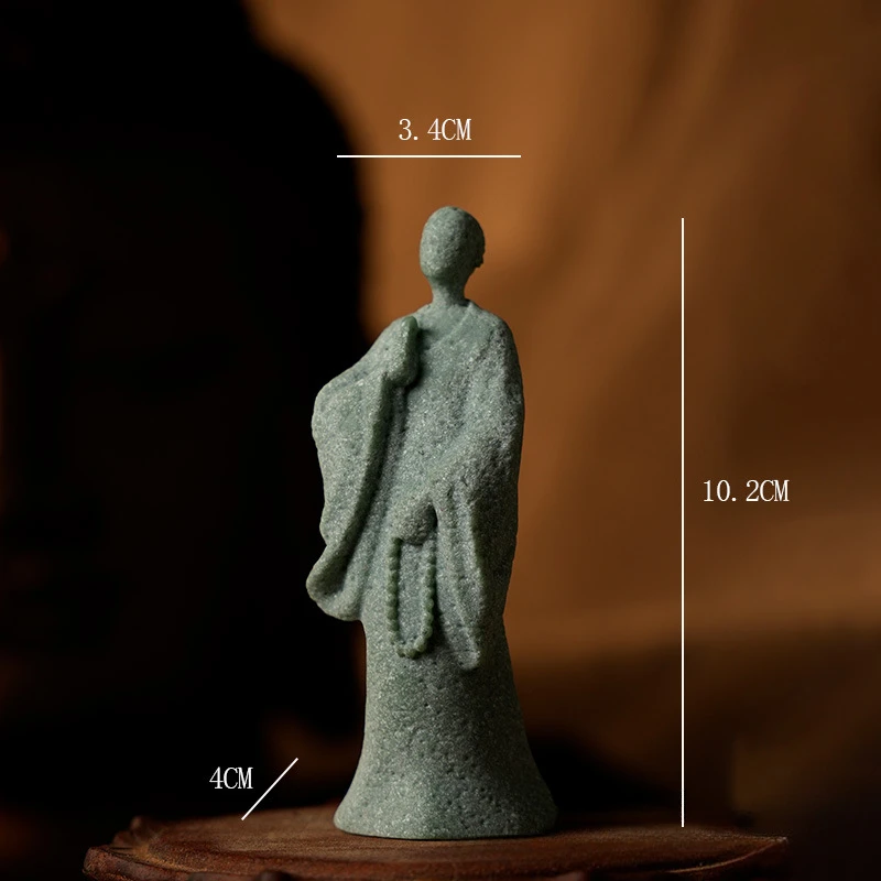 Zen Buddha Garden Statues Decorations Monk Figurine Buddhism Home Decor for Fish Tank Yard Flower Pot Green Sandstone Thailand
