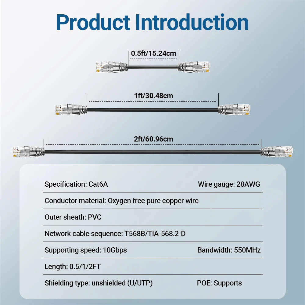 ZoeRax RJ45 CAT6A CAT6 Ethernet Patch Cable 0.5/1/2FT(24PCS) 10G 550MHZ 28AWG POE Lan Cable for Patch Panel/PC/TV/Tablet/Router