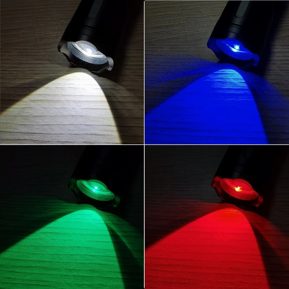 Zoom Red/Greenue/White High Bright lighting FlashlightApply to: Home, Backpacking, Hunting, Auto Emergencies,Fishing,Mountain climbing, camping, Search&Rescue. chose an ideal brightness level to best suit your adventure.